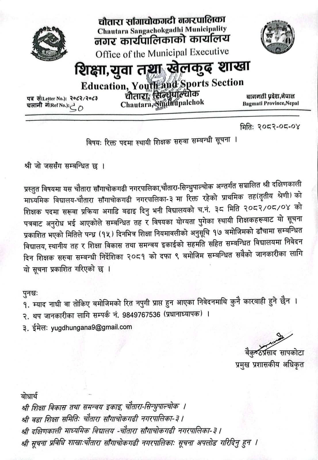 रिक्त पदमा स्थाई शिक्षक सरुवा सम्बन्धी सूचना