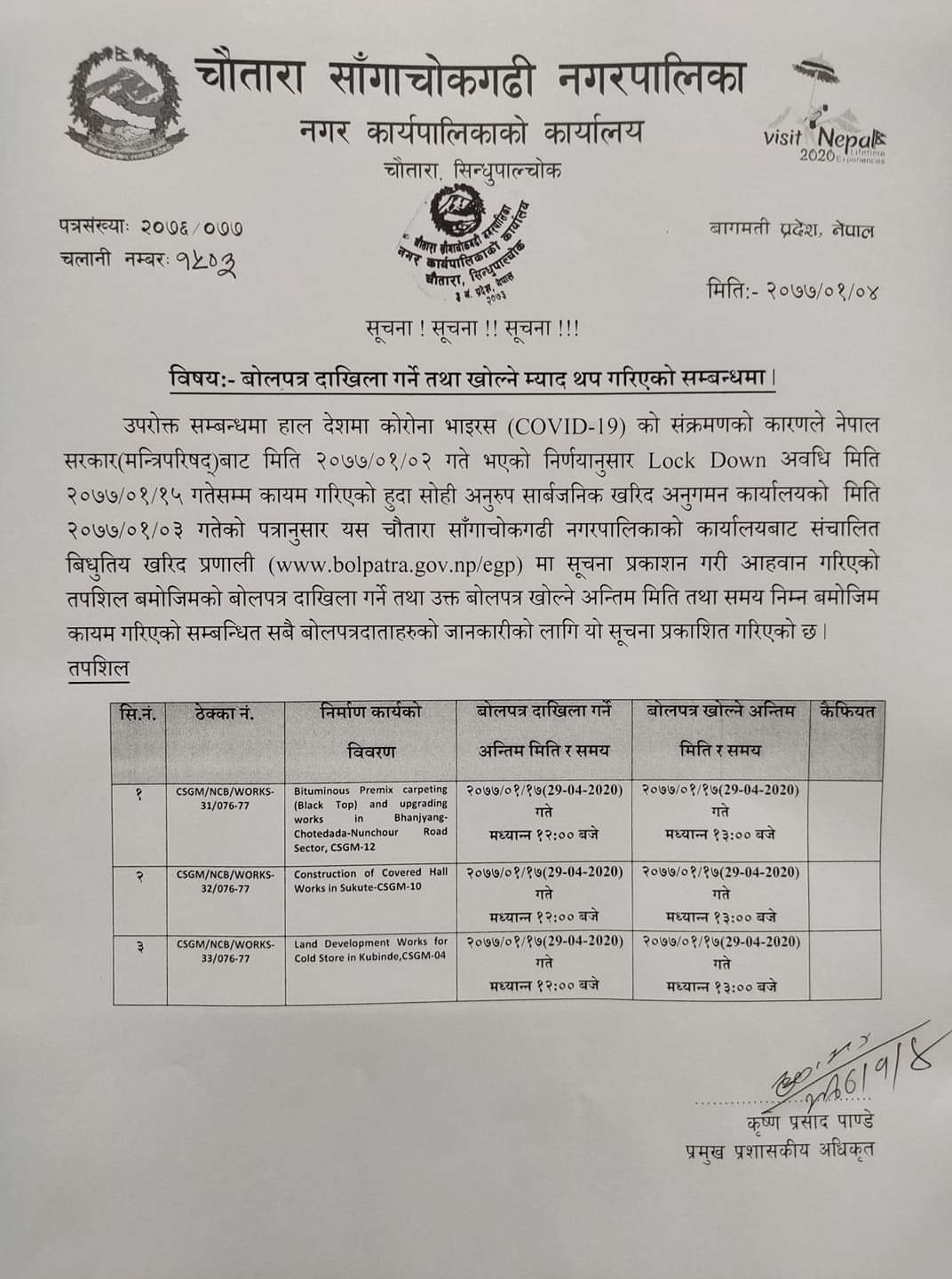 बोलपत्र दाखिला गर्ने तथा खोल्ने म्याद थप सम्बन्धि जरुरी सूचना