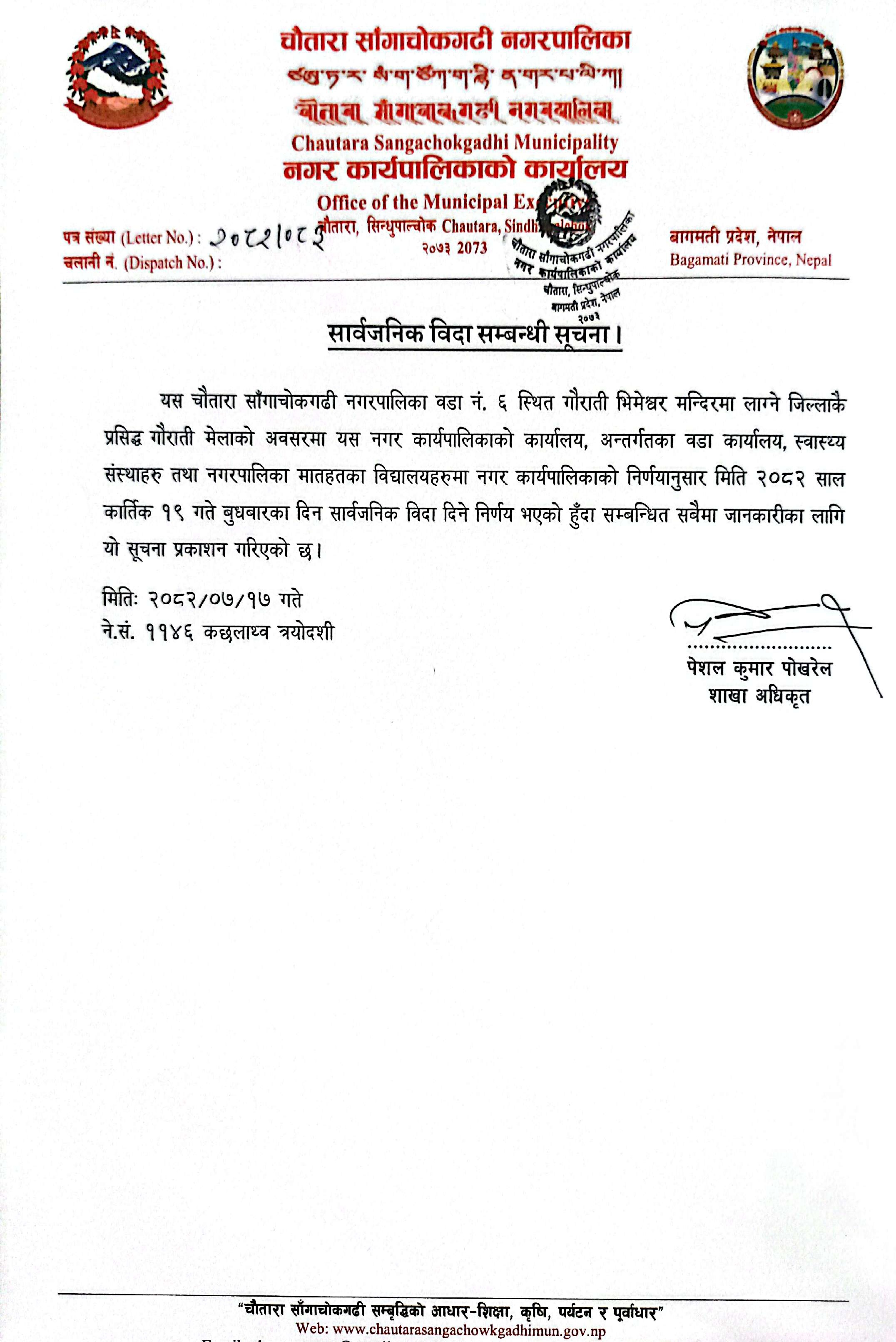 सार्वजनिक विदा सम्बन्धी सूचना ।